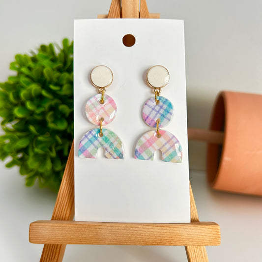 Asymmetrical Arch Dangle in Spring Plaid Multi
